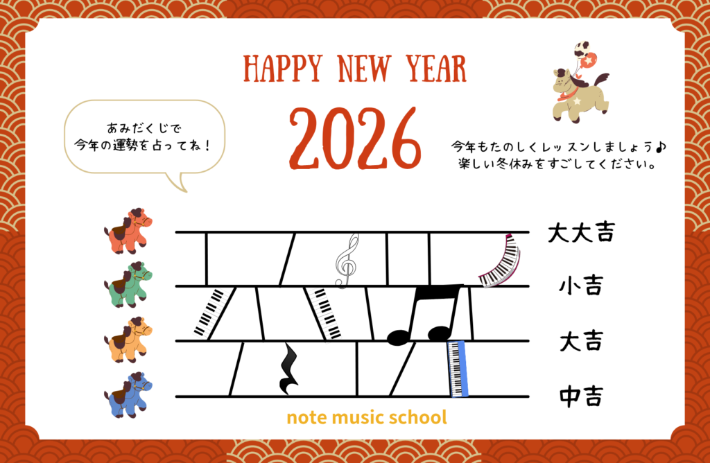 今年もノートミュージックスクールは、生徒の皆さんと、音楽やピアノを通して前向きで楽しい時間を共有できるよう努めて参ります。